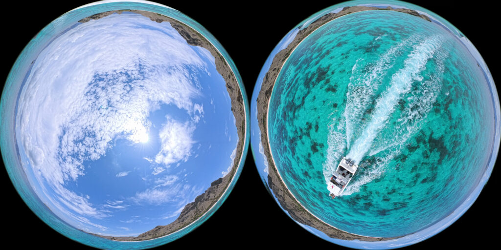 All in all, the final stitched equirectangular image has 7,680px × 3,840px hiding the drone in the stitching, same trick as the famous Insta360 Invisible Selfie Stick: